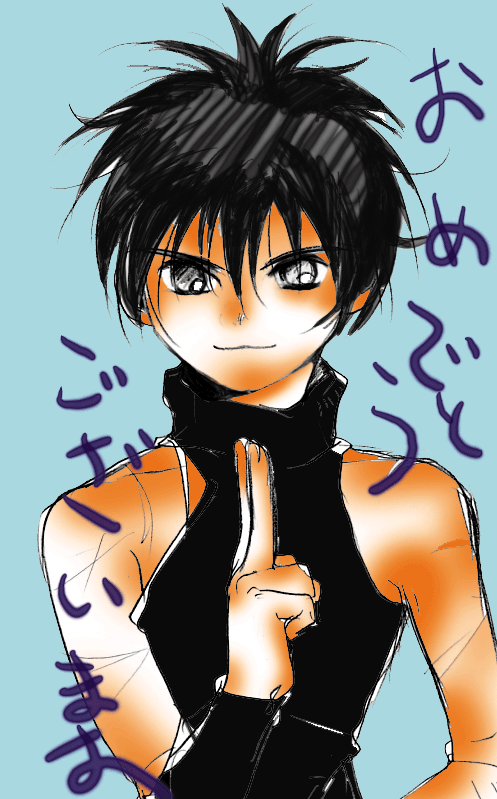 たまにあるのですが、お絵かき中にツールのどれを選んでも消しゴムになっちゃうことがあります。いまも良守の顔を塗ってる途中でいきなし消しゴムになっててびっくりこんでした。なおし方がわからんので途中もいいところですがそのままさらします。うぬ、なんとかならんものか。